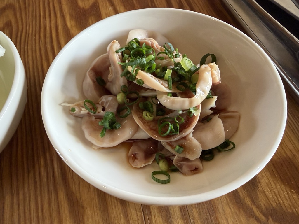 Rather than standing out as a strong-flavored dish, it worked as an opener. The chewy texture naturally slowed the pace of eating, and between bites of grilled meat, it acted as a reset for the mouth. As a starting point before moving on to the grill, it felt well placed.