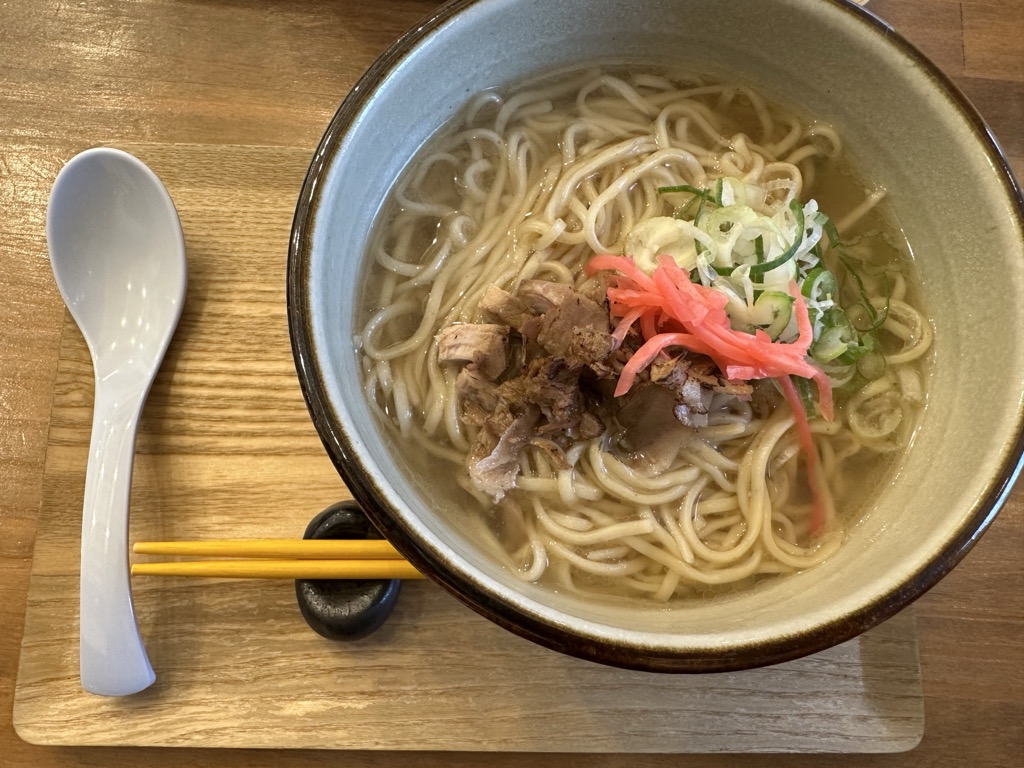 The noodles were thicker than those used in the ramen or zaru soba, with a springy bite and a smooth, gentle glide when swallowed. They carried the slightly chewy, mochi-like texture characteristic of Okinawa soba.