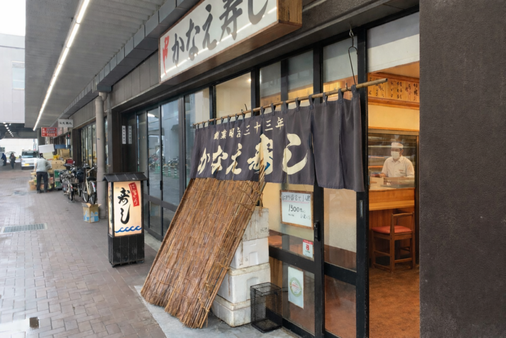 Kanae Sushi opens around 4:30 a.m., and I had heard that coming early meant avoiding crowds and being able to focus on the food. That was exactly what I wanted. Outside, the city felt quiet—less like morning, more like the tail end of night.