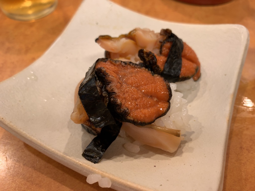 It had a firm bite without being tough, and with each chew, the umami became more pronounced. Any distinctive bitterness often associated with this shellfish was carefully controlled. It felt well-balanced and clean, clearly shaped to work as sushi rather than standing out awkwardly.