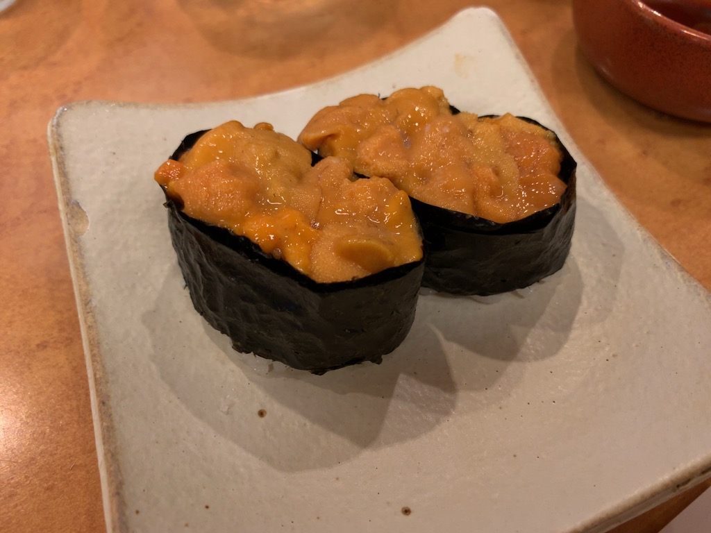 From the first bite, the flavor was unmistakably uni—dense but not overwhelming. It struck a careful balance: neither too light nor excessively heavy. Around this point, I switched to sake. I had planned to drink from the start, but the quality of the sushi made the decision feel inevitable rather than intentional.