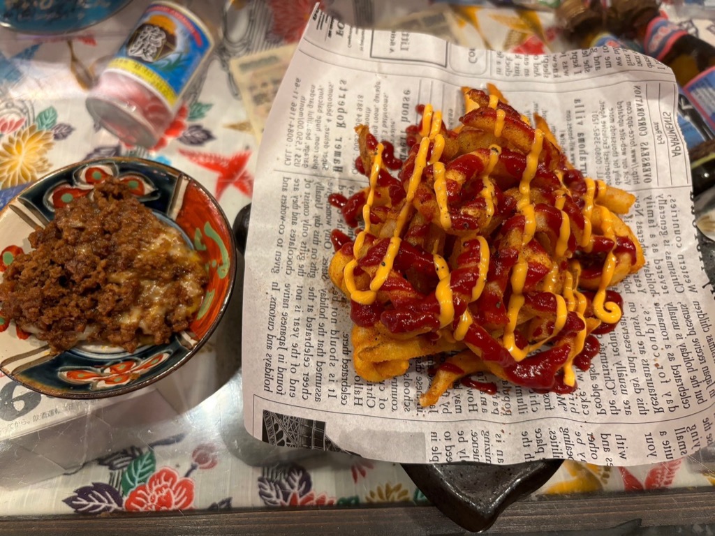 3. Mozuku Tempura, Goya Champuru, and Chili Cheese Curly Fries