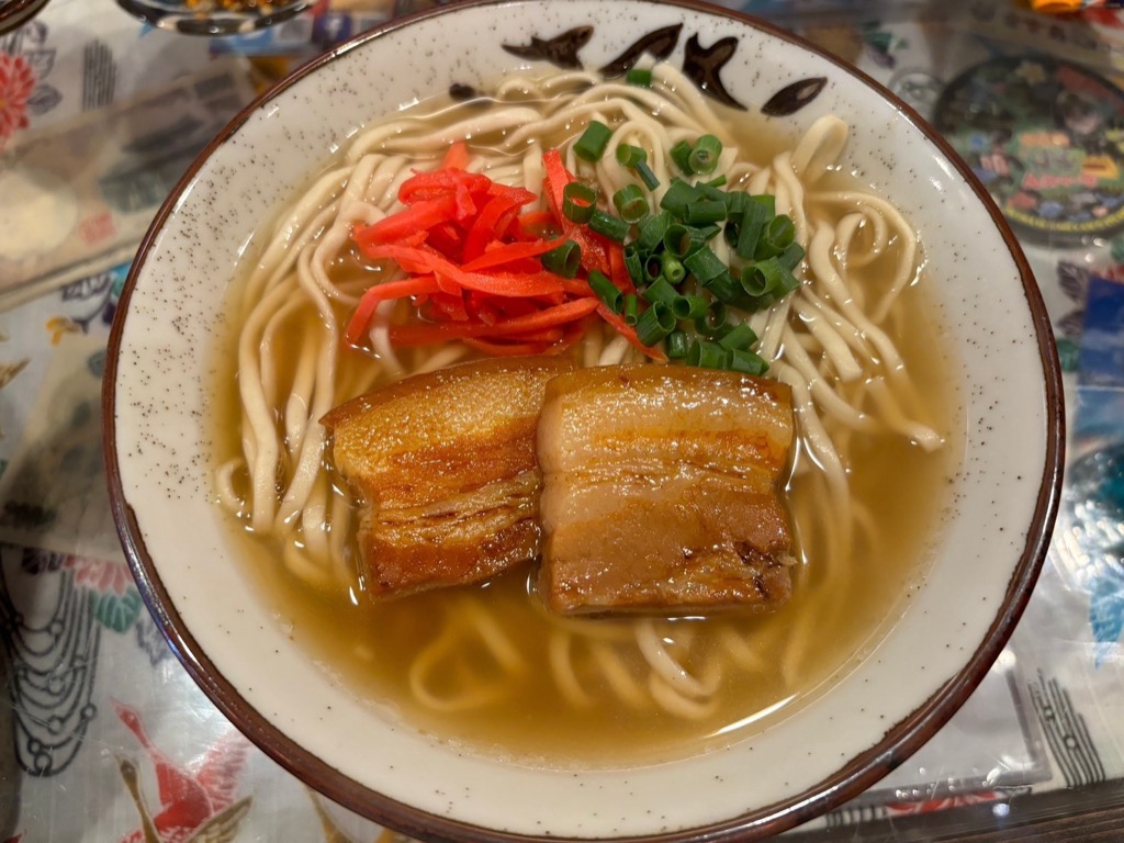 Miyako soba features thicker noodles and a broth combining pork and seafood stock. It is understated rather than flashy, making it ideal as a finishing dish. Among Okinawan soba varieties, the Miyako style is clearly expressed here.