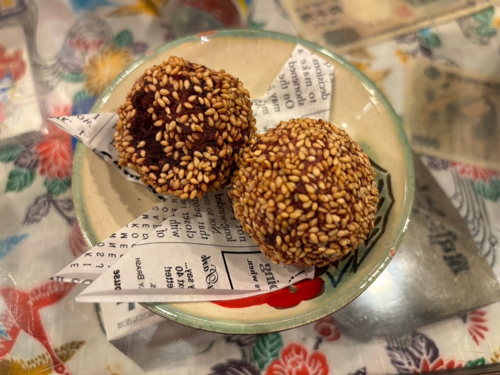 The beni-imo sesame dumplings left a strong impression with their chewy exterior and natural purple sweet potato sweetness. The sweetness is restrained, so they never feel heavy, even after a full meal.