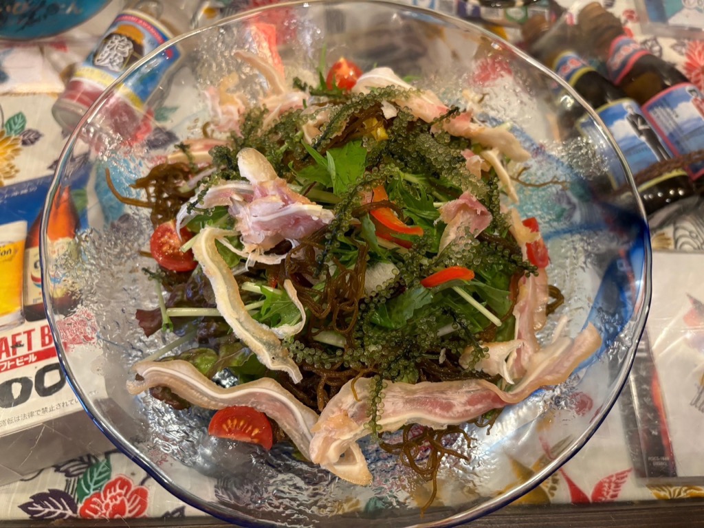 The first dish I ordered was the Shiman-chu Salad. Built around island vegetables, it stood out for its crisp texture and light but sufficient seasoning. As an Okinawan appetizer, it clearly follows a widely shared standard: refreshing without being thin or unsatisfying. It felt well-balanced as an opening dish.