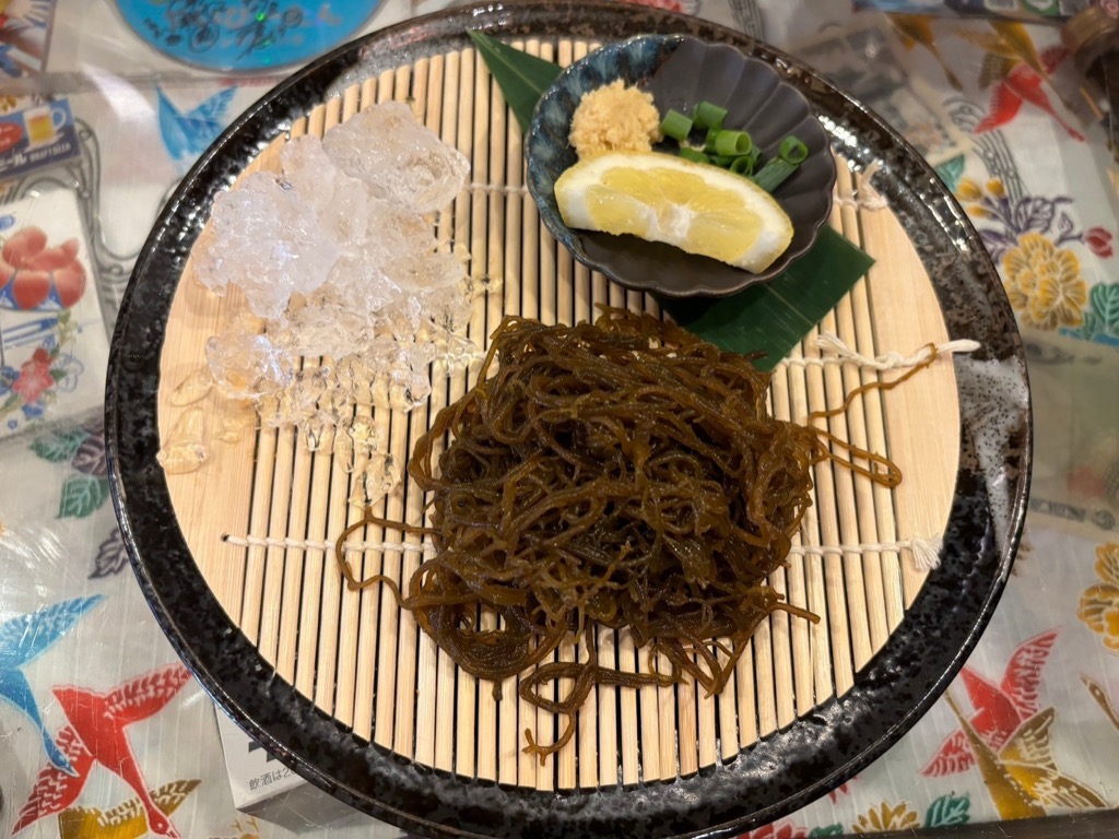 The mozuku vinegar featured thick Okinawan seaweed with a pleasant acidity and smooth texture. The vinegar was assertive but never harsh, preserving the umami of the mozuku itself. It works especially well as a reset for the palate between dishes.