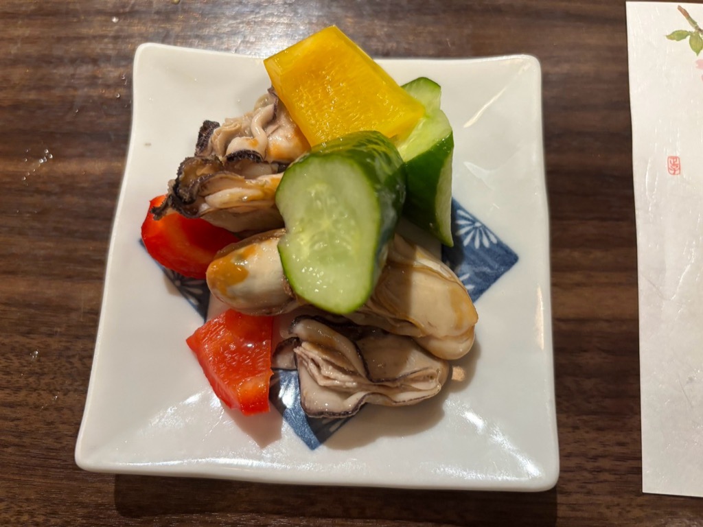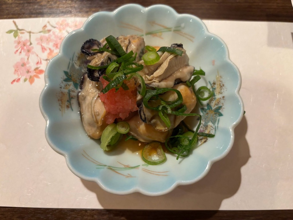 牡蠣ポン酢は、ポン酢の爽やかな酸味と牡蠣のプリッとした身の食感がバランスよく出ていて、「牡蠣そのものの味」を確かめられる一品でした。