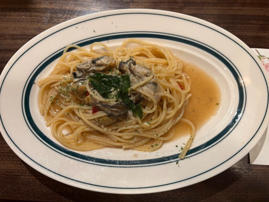 牡蠣ペペロンチーノは、にんにくオイルの香りが程よく乗ったパスタで、牡蠣と麺の組み合わせが違和感なく、濃厚な味わいとは違う“軽やかさ”がありました。私はここまでの流れの途中に入れると、味の変化が心地よいなと思いました。