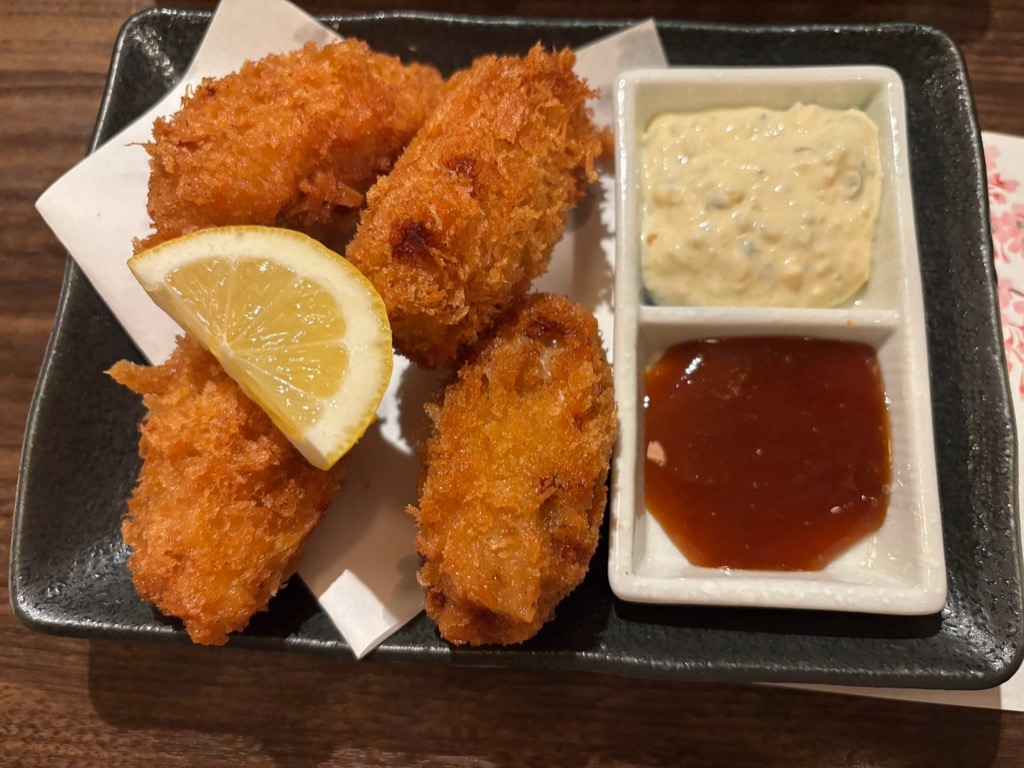 揚げ物のカキフライは、衣のサクッとした食感と中の牡蠣のジューシーさの対比がはっきりしていて、まさに牡蠣らしさを味わう定番だと思いました。同時に複数人で行っていれば、シェアして少しずついろいろ味を確かめるのに向いている一皿だと感じました。