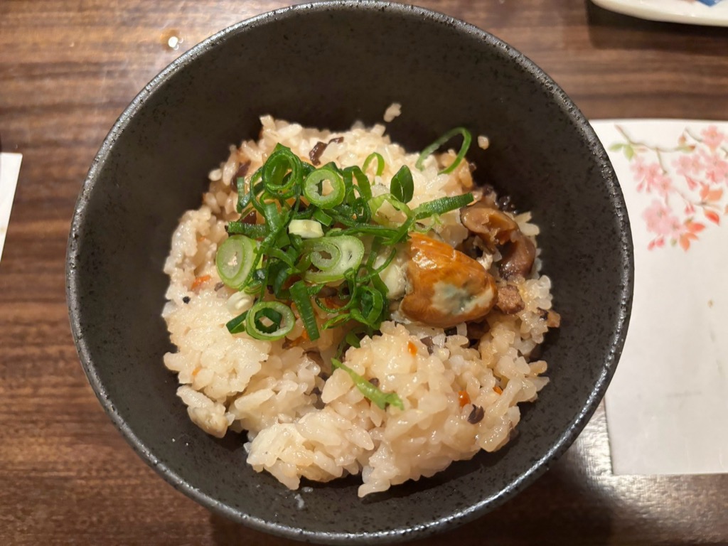 そして、牡蠣の炊き込みご飯。これは単独の料理としても満足感があり、牡蠣の旨みがご飯に移って、口当たりが優しい一体感になっていました。食後に時間が経っても、これが「この日の牡蠣料理の締めだったな」と思い返す一杯になっています。