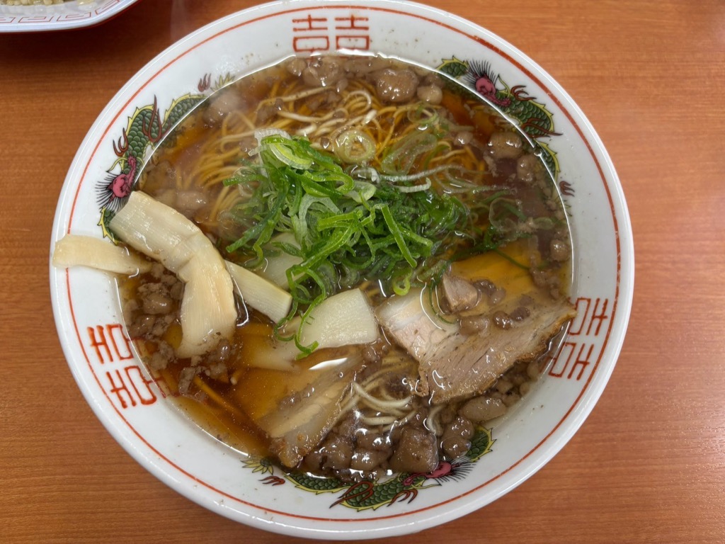この店で食べた尾道ラーメンは、まずスープの風味が印象に残りました。鶏ガラや魚介の旨味をベースにしたしょうゆ味のスープは、濃すぎず軽すぎないバランスで、背脂のコクが程よく溶け込んでいます。麺は細めのストレートタイプで、スープと絡むと口当たりが滑らかになり、最後まで熱さと味の輪郭が保たれているように感じました。