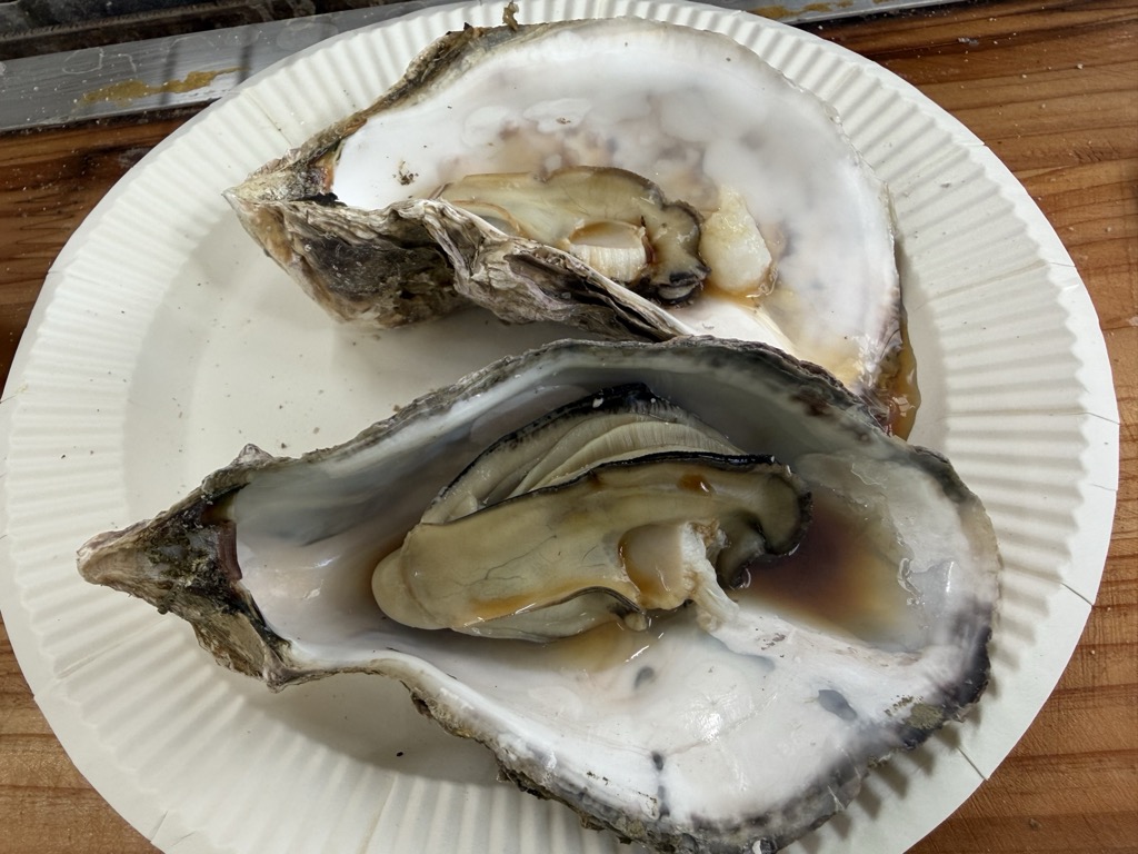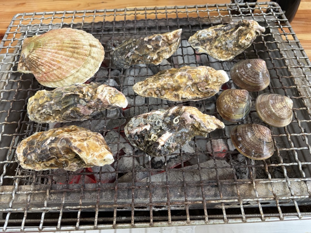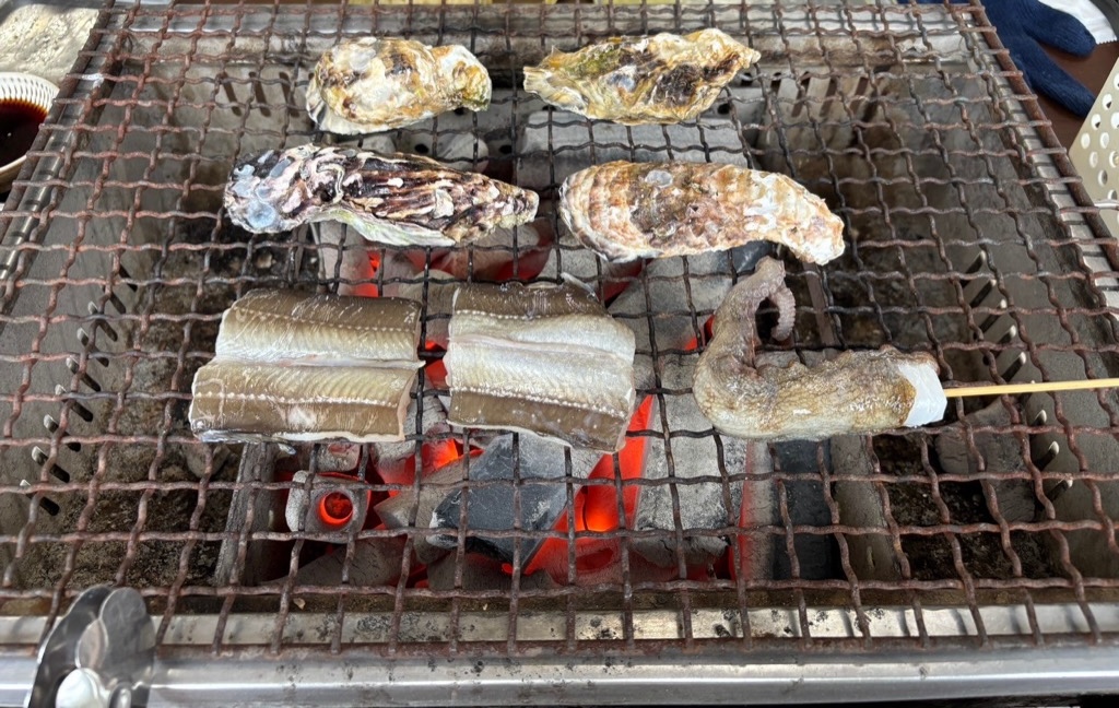 牡蠣は一盛 1,300円前後。殻付きの牡蠣を自分のペースで焼きながら食べる形で、私は「よく焼いて食べる」という前提の安心感がありました。火が入ると身がぎゅっと締まる一方で、噛んだ瞬間に甘みがふわっと出てくる感じがあって、クセの強さより“食べやすさ”が先に来ました。炭火で焼くスタイルなので、焼き上がりの香ばしさが最後に残るのも印象的でした。