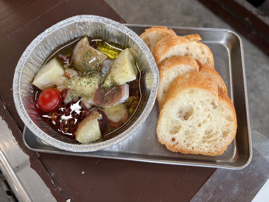 アヒージョセットは、海鮮をオイルでまとめるタイプで、牡蠣小屋の流れの中では少し異色です。私は焼き物中心で進めていたので、ここでオイルの香りが入った瞬間に、口の中の景色がガラッと変わりました。バケットが用意されているので、オイルの旨みを“食事として回収できる”のも良かったです。焼く・食べるだけで終わらず、最後に余韻をまとめる役として働いていました。