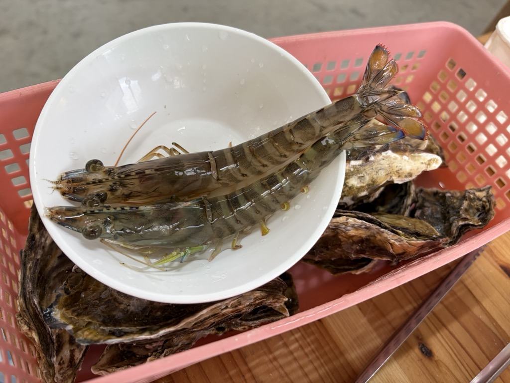 活車エビは、メニューとして1尾 400円から。焼き上げて食べると、身がふわっとほどけるというより、弾力が残って“噛むほど甘い”方向に寄っていました。牡蠣の甘みとは質が違って、エビは噛んだ瞬間に甘みが立つので、私はこのスピード感が気持ちよかったです。