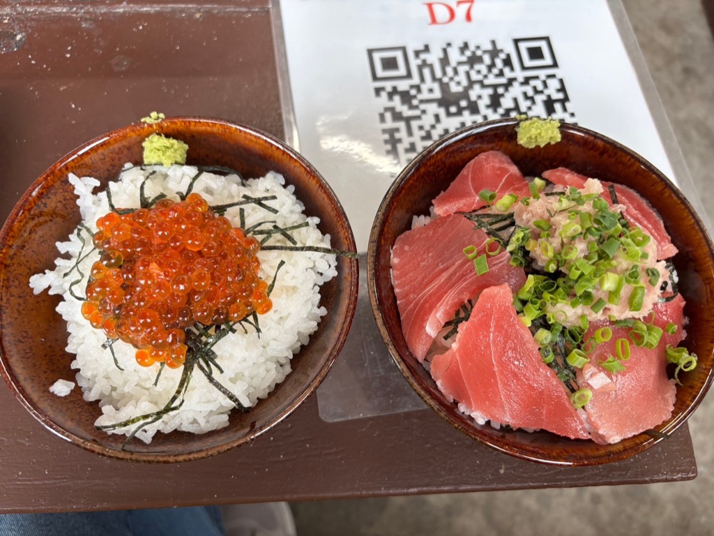 いくら丼は一杯 650円前後。いくらの粒感が前に出るので、焼き牡蠣のあとに食べても“味が負けない”のが良いところでした。塩気が強すぎる方向ではなく、口の中でプチっと弾ける瞬間の満足感で押してくるタイプに感じました。私は、焼き物→丼→また焼き物、という往復の中で一番テンションが上がりました。