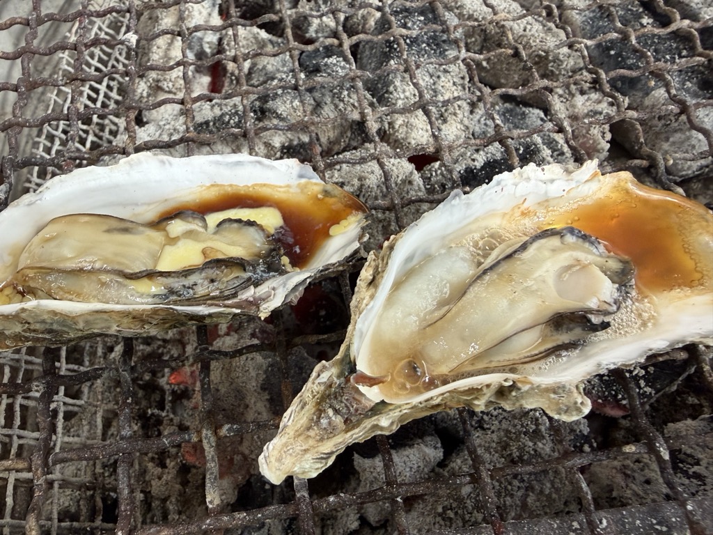 牡蠣は一盛 1,300円前後。殻付きの牡蠣を自分のペースで焼きながら食べる形で、私は「よく焼いて食べる」という前提の安心感がありました。火が入ると身がぎゅっと締まる一方で、噛んだ瞬間に甘みがふわっと出てくる感じがあって、クセの強さより“食べやすさ”が先に来ました。炭火で焼くスタイルなので、焼き上がりの香ばしさが最後に残るのも印象的でした。